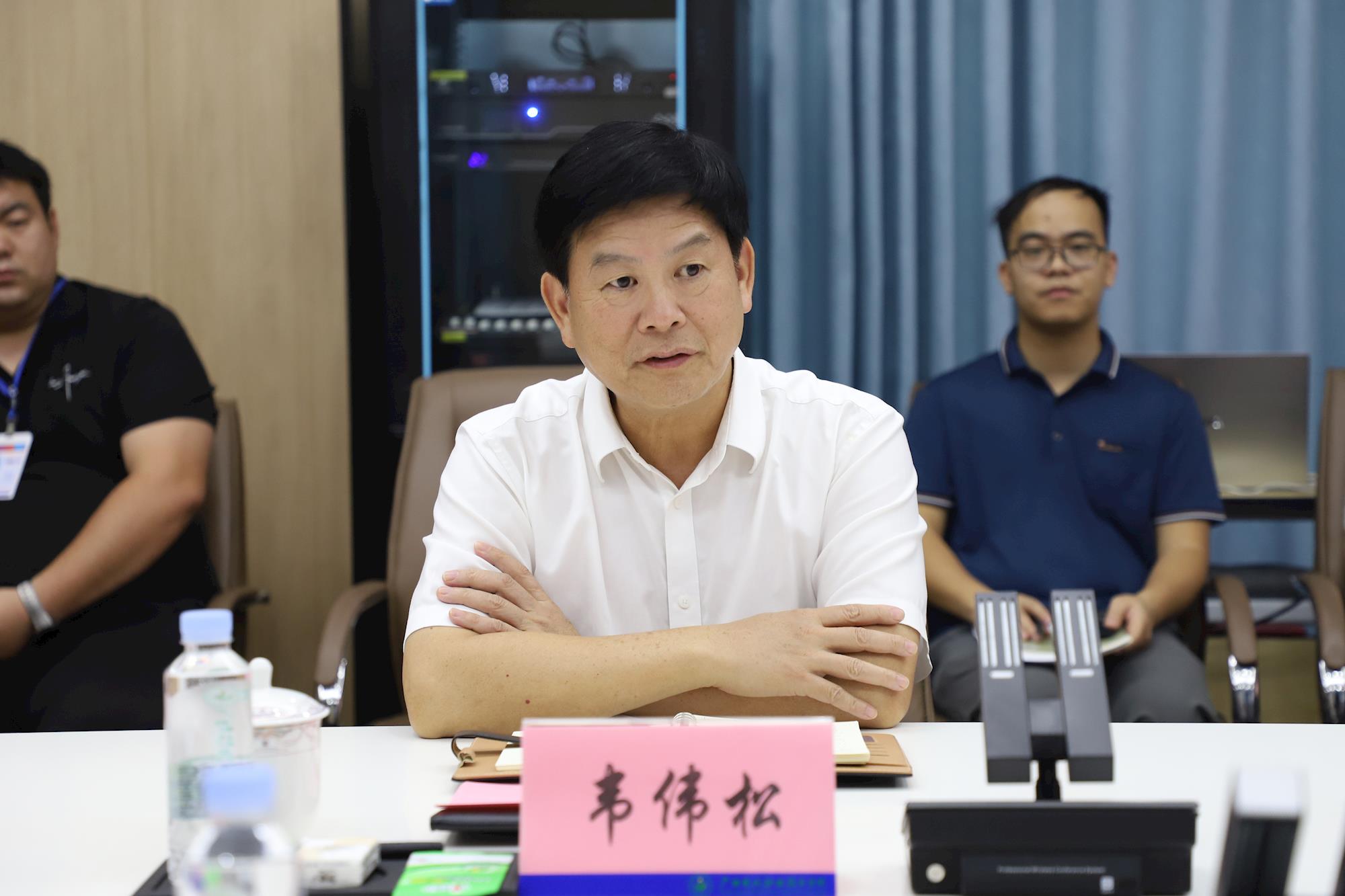 韦伟松书记在总结中表示,学校将设立“盛鸿宇专家工作站”,每月召开一次推进会。会议最后,韦伟松代表学校向盛鸿宇教授颁发“广西现代职业技术学院客座教授”聘书。盛鸿宇表示,将充分发挥自身资源优势,持续为广西现代职业技术学院人工智能专业建设提供智力支持与平台资源,助力学校打造区域人工智能技术技能人才培养高地。