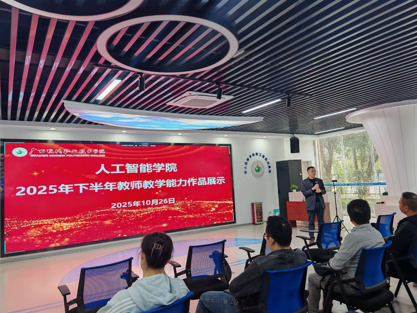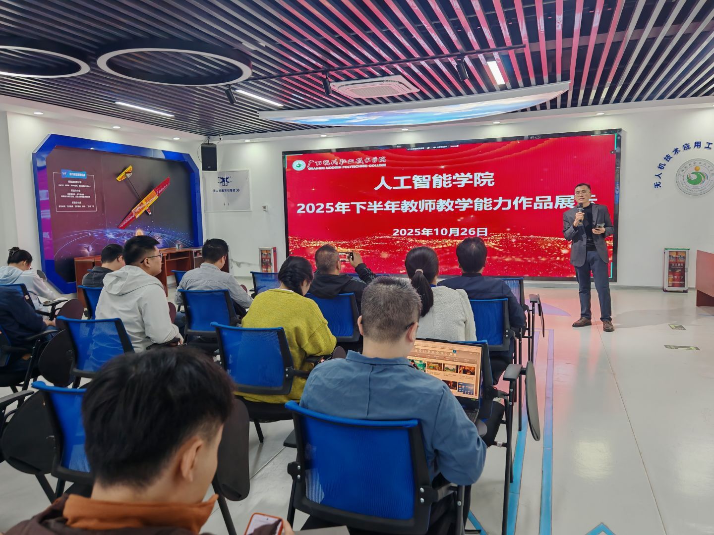 10月26日,人工智能学院在无人机展厅举行2025下半年教师教学能力展示活动。重庆电子科技职业大学牟向宇教授受邀线上担任首席评委,全院 31 名专兼职教师积极参与了本次展示活动。