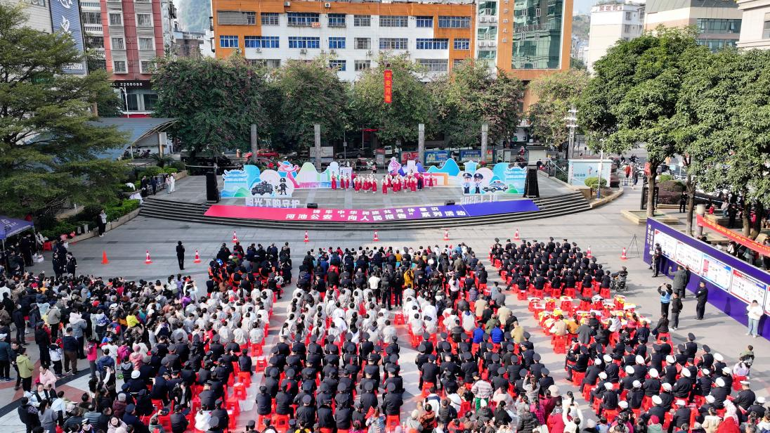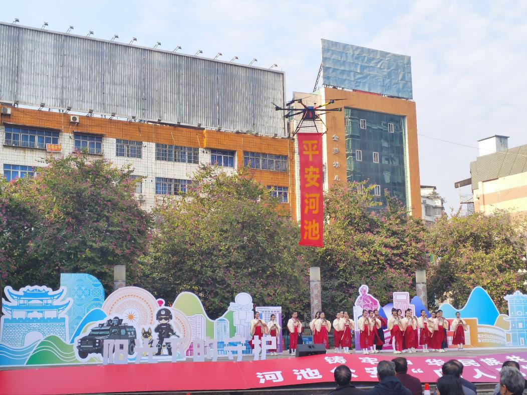 2026年1月10日上午,河池市公安局庆祝第六个人民警察节系列活动暨警营开放日活动在河池市金城江区文化广场举行。为进一步凝聚警民同心,同时深化警校联动,厚植青年崇警敬警情怀,公安局警航大队邀请我院无人机专业师生携带设备展演。